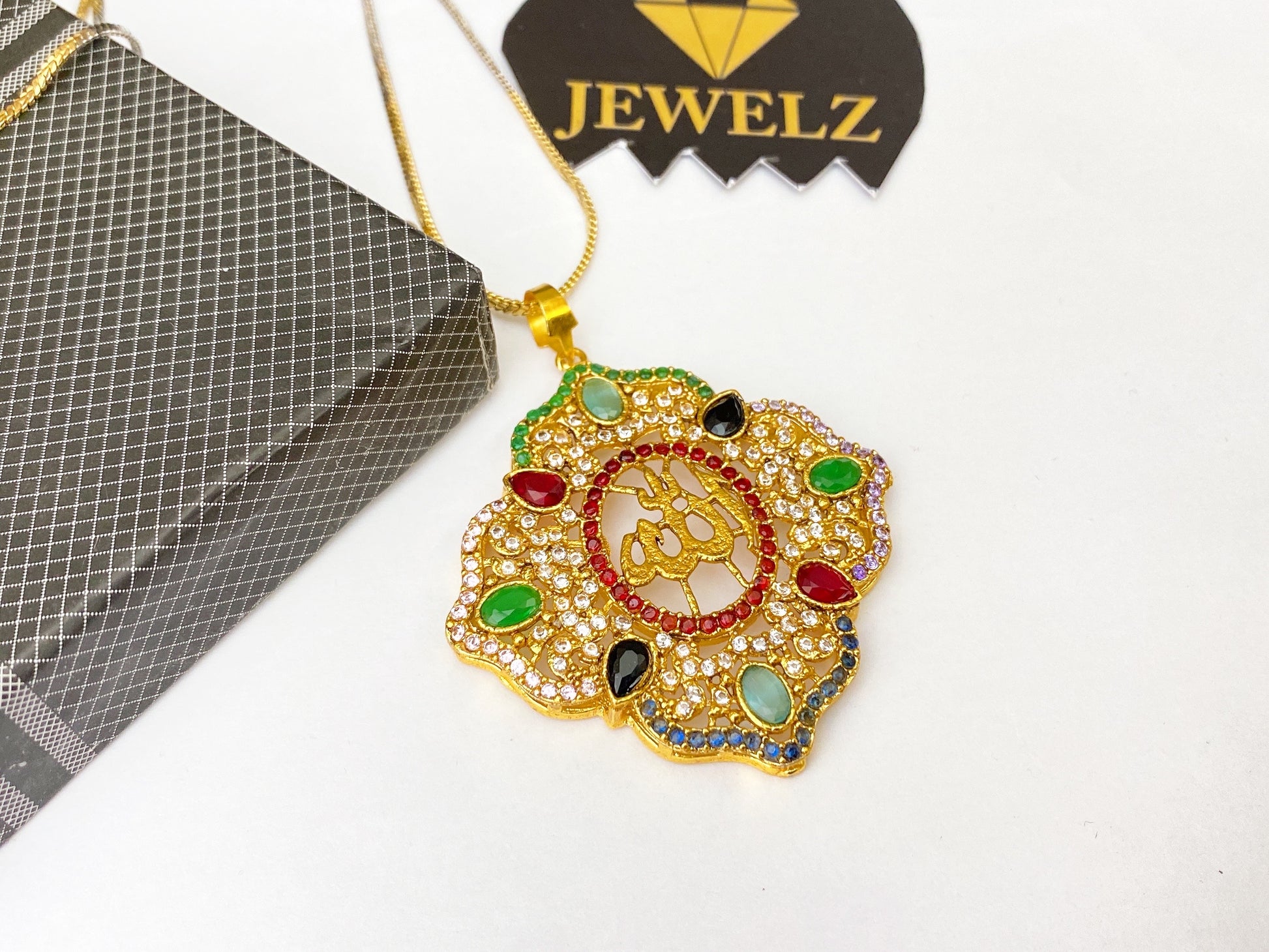Gold plated Allah Locket with chain in real stone.